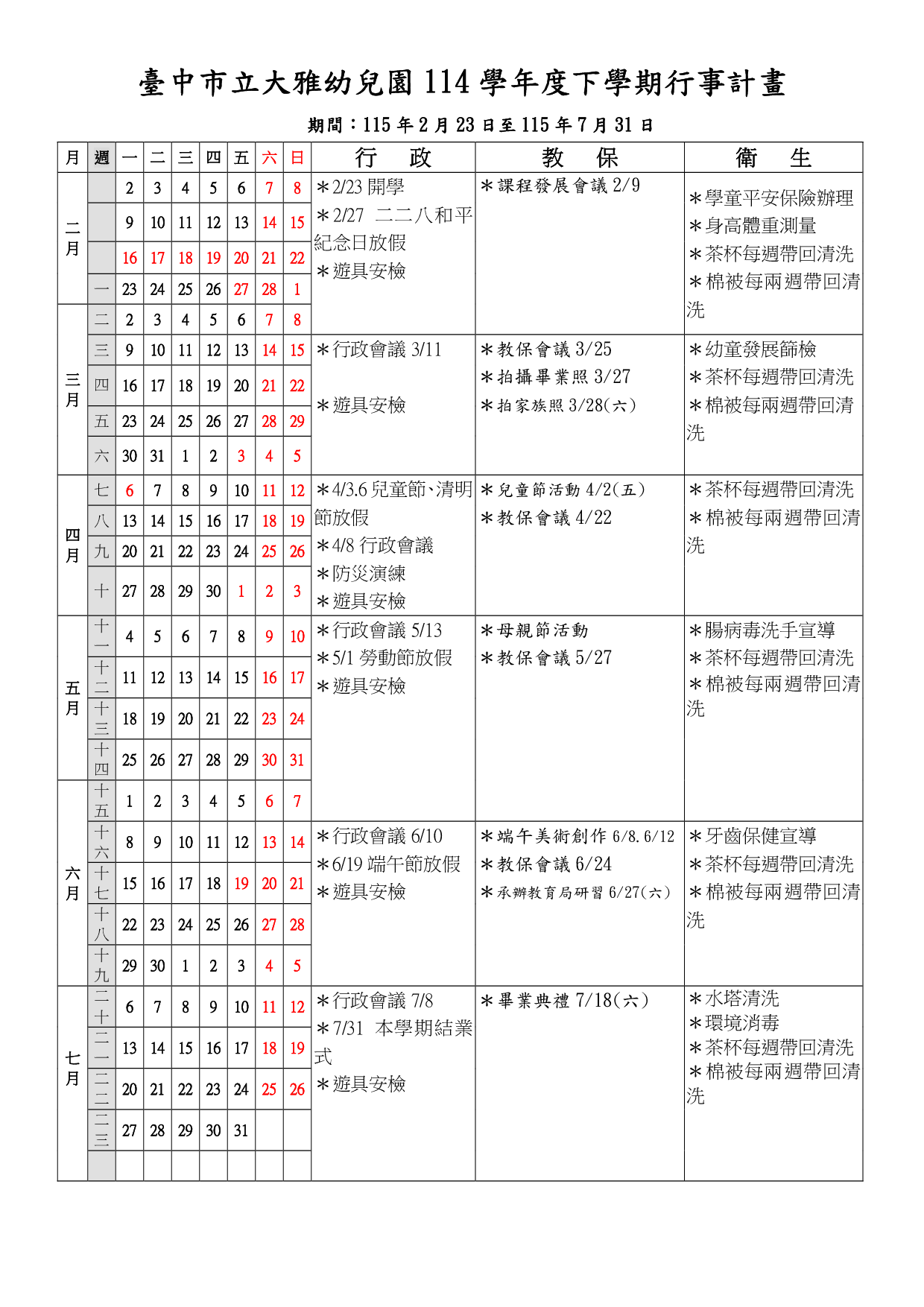學期行事曆