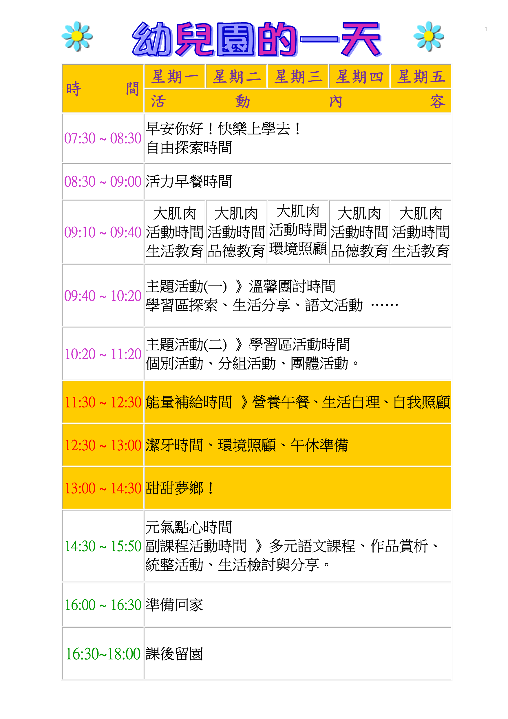 作息表